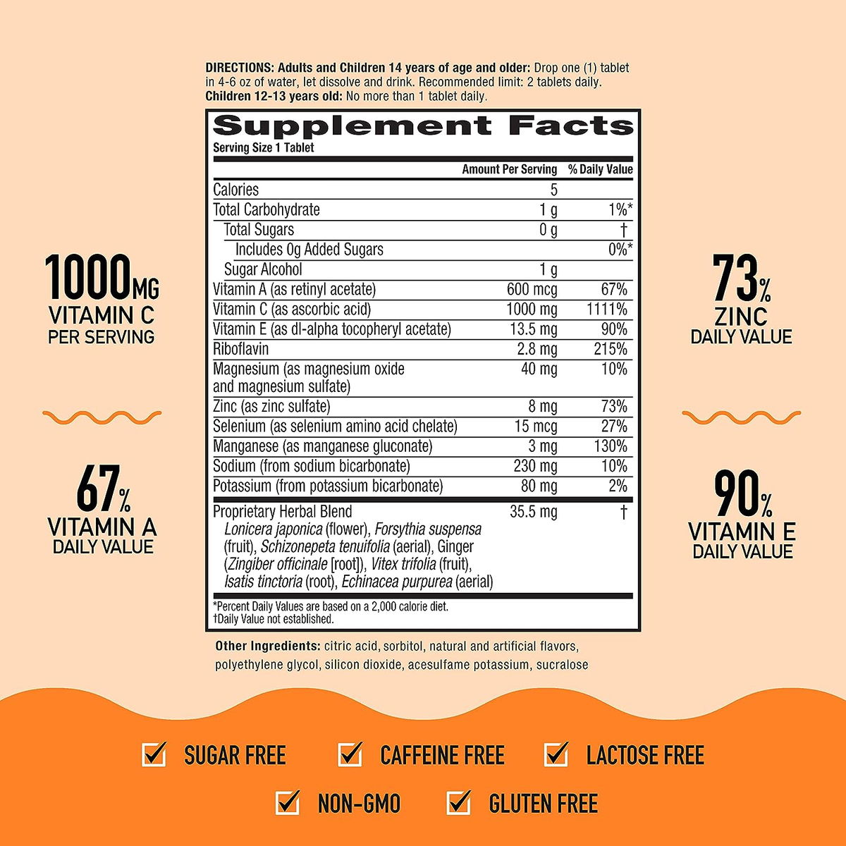 Comprimidos efervescentes de Airborne sabor naranja, Anaranjado