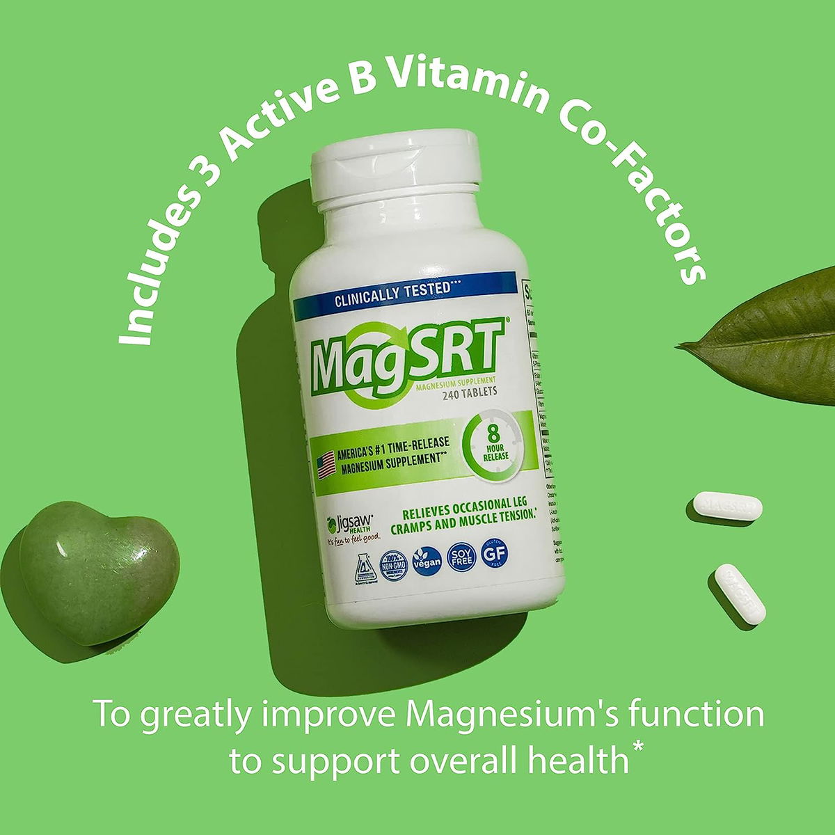 Suplemento de magnesio: Jigsaw MagSRT es el único suplemento de magnesio que combina el malato de dimagnesio en una fórmula de liberación temporizada que es más biodisponible que otras formas de magnesio y evita molestias digestivas