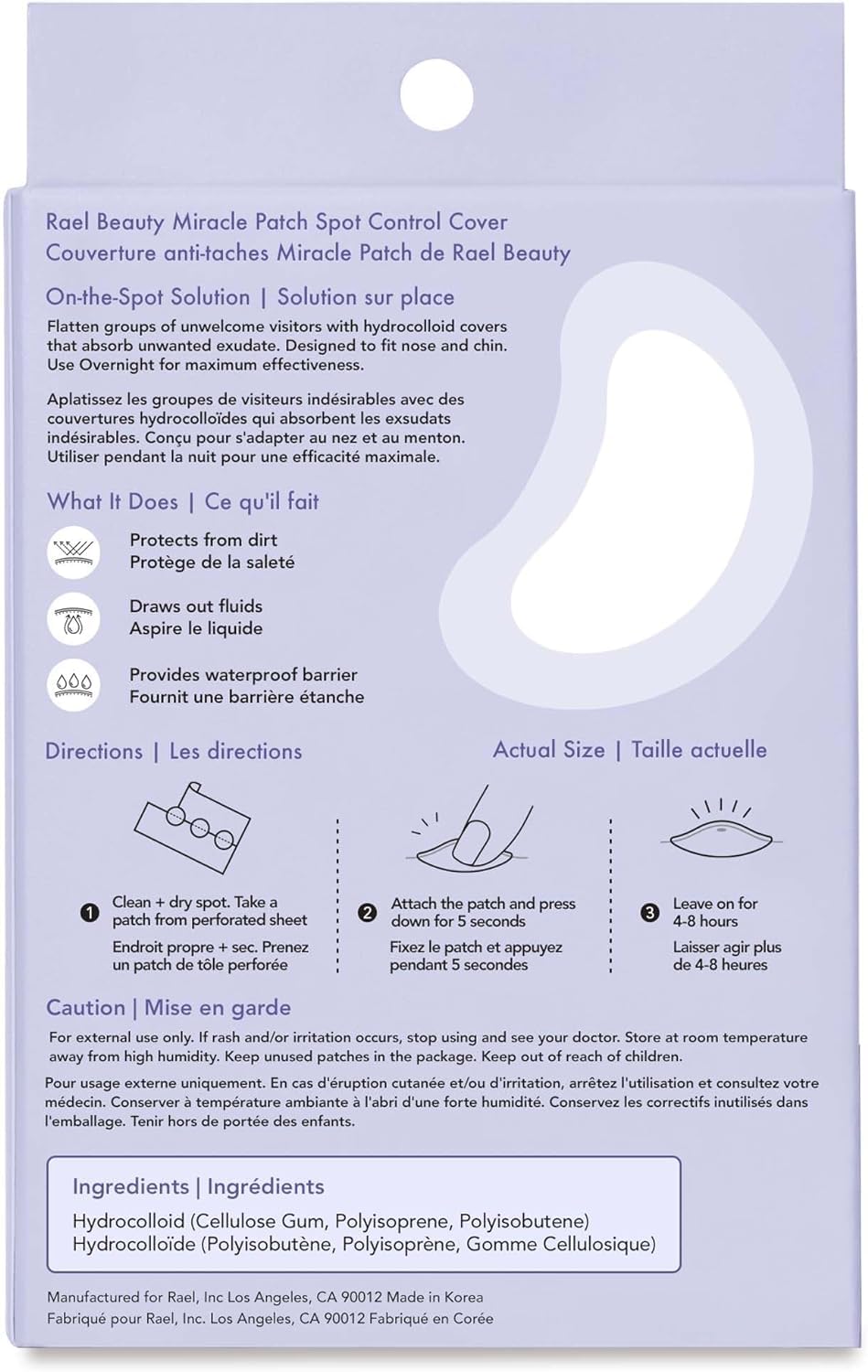 Rael Miracle - Cubierta grande para control de manchas, tamaño largo, tira hidrocoloide para brotes, parche de cobertura adicional para acné.