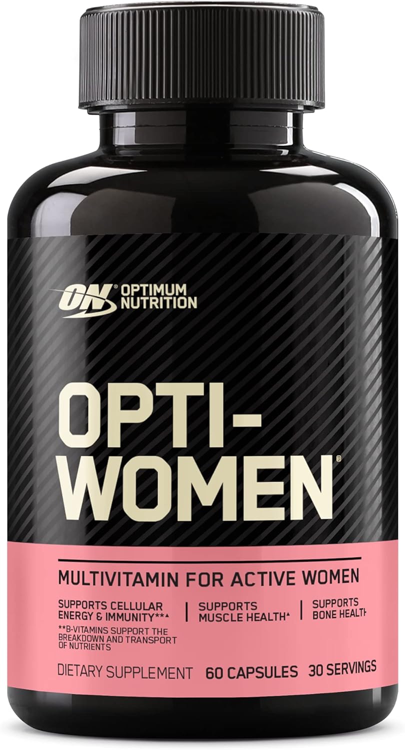 El multivitamínico diario Optimum Nutrition Opti-Women para mujeres incluye extractos botánicos que se pueden construir a través del consumo de una dieta saludable y equilibrada, además de hierro y ácido fólico.