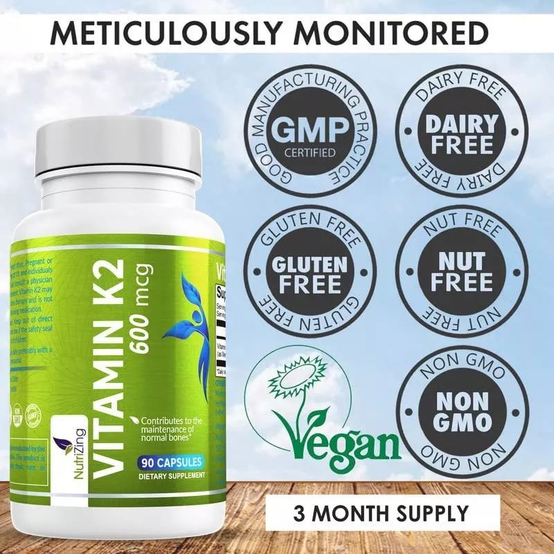 Alta resistencia: la fórmula de menaquinona de alta potencia de Nutrizer te proporciona 600 mcg.