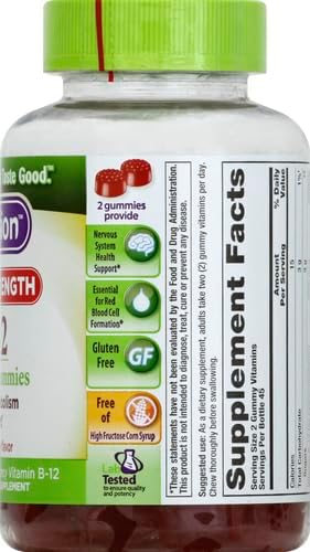 La vitamina B12 es esencial para la formación de glóbulos rojos y para ayudar a convertir los alimentos en energía, y estas vitaminas gomosas pueden ayudar a apoyar el metabolismo energético y la salud del sistema nervioso.