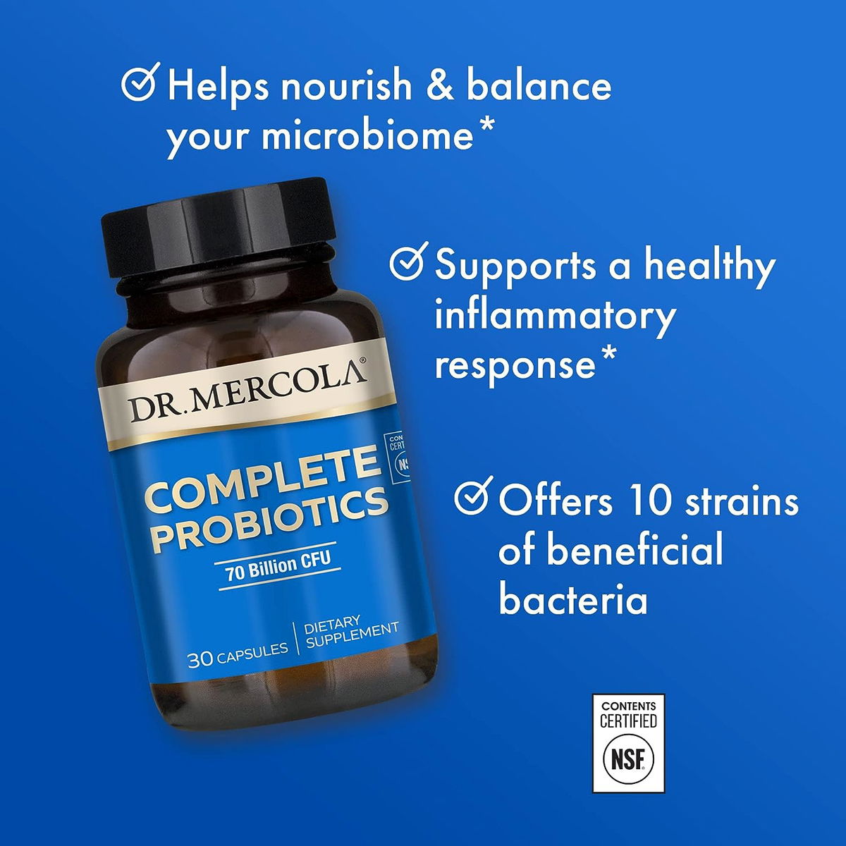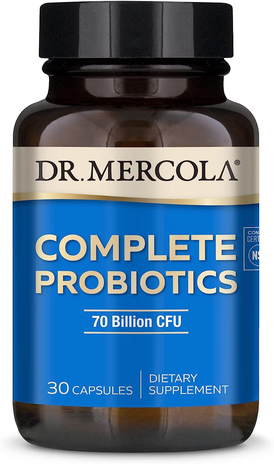 Probioticos completos Dr. Mercola 70 billones de CFU, resistente a ácidos y bilis, promueve la salud digestiva y soporta sistema inmune. Cada botella de probióticos completos (70 mil millones de CFU).