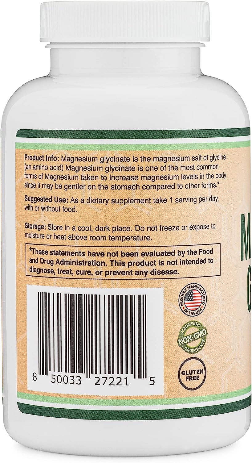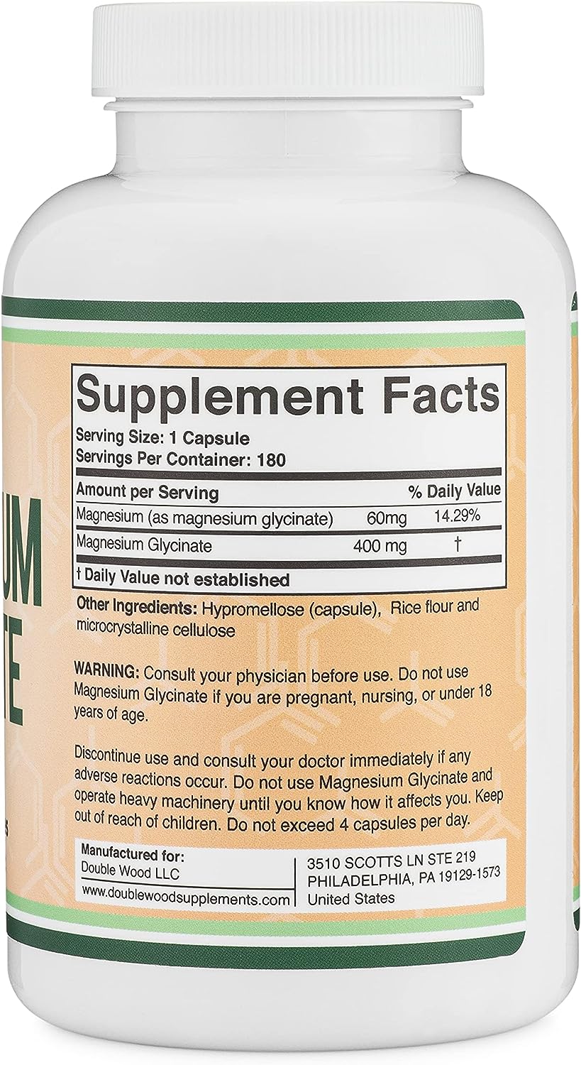 DOUBLE WOOD SUPPLEMENTS - MAGNESIUM GLYCINATE Glicinato de magnesio 400 mg, cápsulas (veganas seguras, fabricadas y probadas por terceros en los Estados Unidos, sin gluten, sin OMG) magnesio de alta absorción por Double Wood Supplements