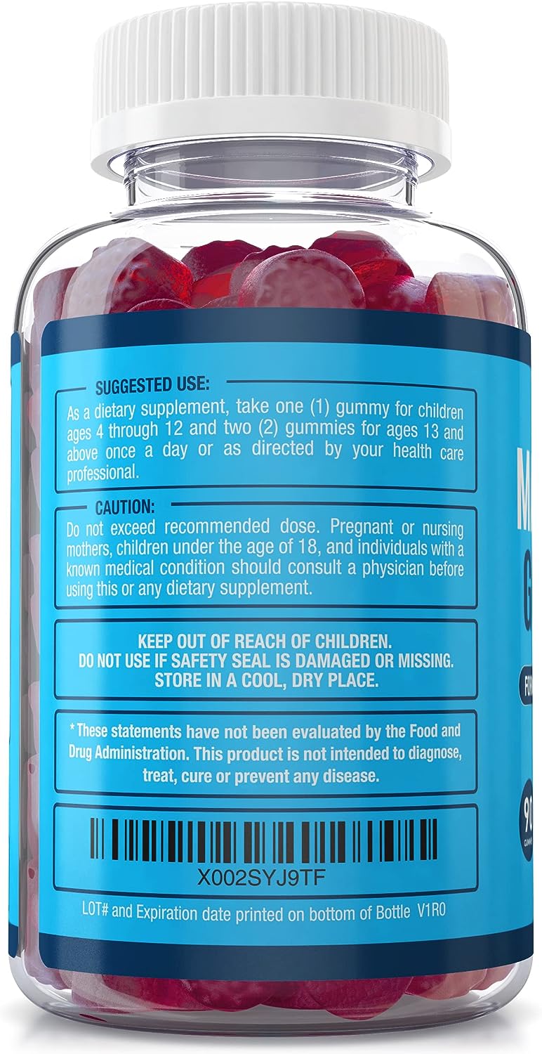 Hecho para toda la familia: nuestras gomitas de magnesio son la forma más conveniente para que tu familia coseche los múltiples beneficios del magnesio. Estas gomitas te permiten disfrutar de días más tranquilos y de un sueño reparador, lo que te hace sentir recargado cada vez que te despiertas. El magnesio también promueve la salud ósea y cardíaca más fuerte y apoya las funciones musculares y nerviosas. Solo se necesita 1 gomita para niños de 4 a 12 años y 2 gomitas para edades de 13 años en adelante para recibir estos magníficos beneficios del magnesio