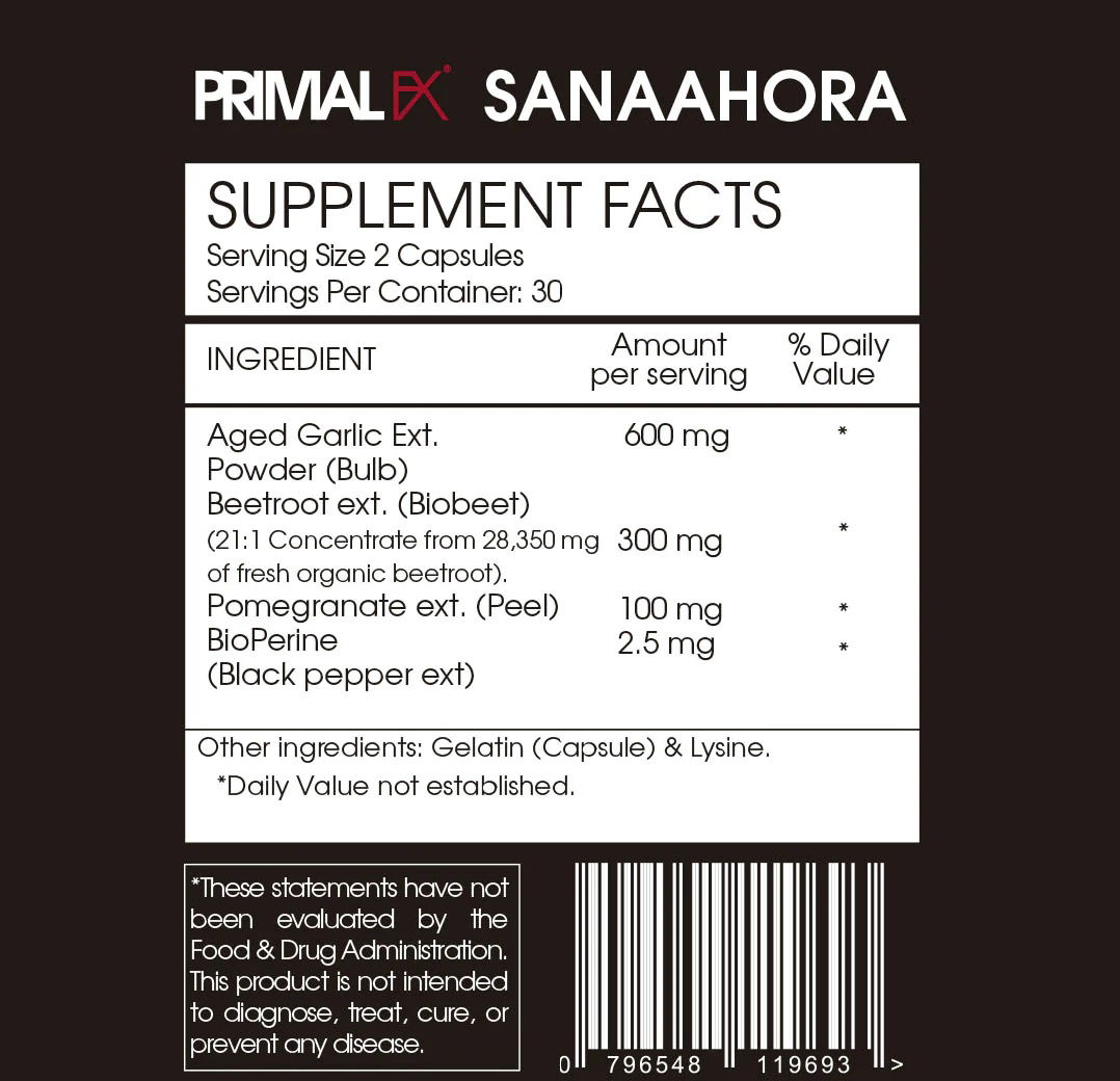 extracto de ajo añejo, extracto de remolacha, extracto de cáscara de granada, extracto de pimienta negra