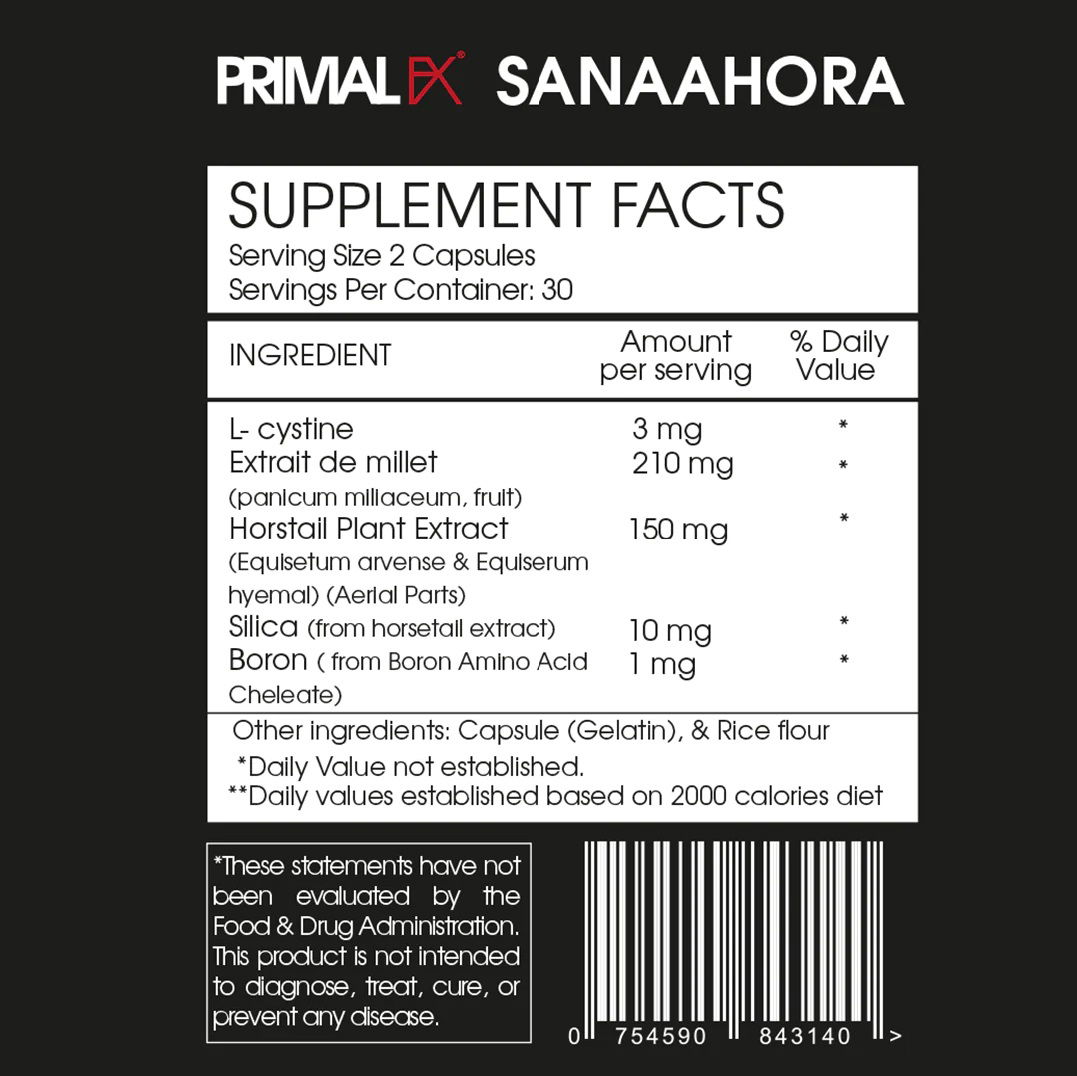 Extracto de mijo, l-cistina, extracto de planta de cola de caballo.