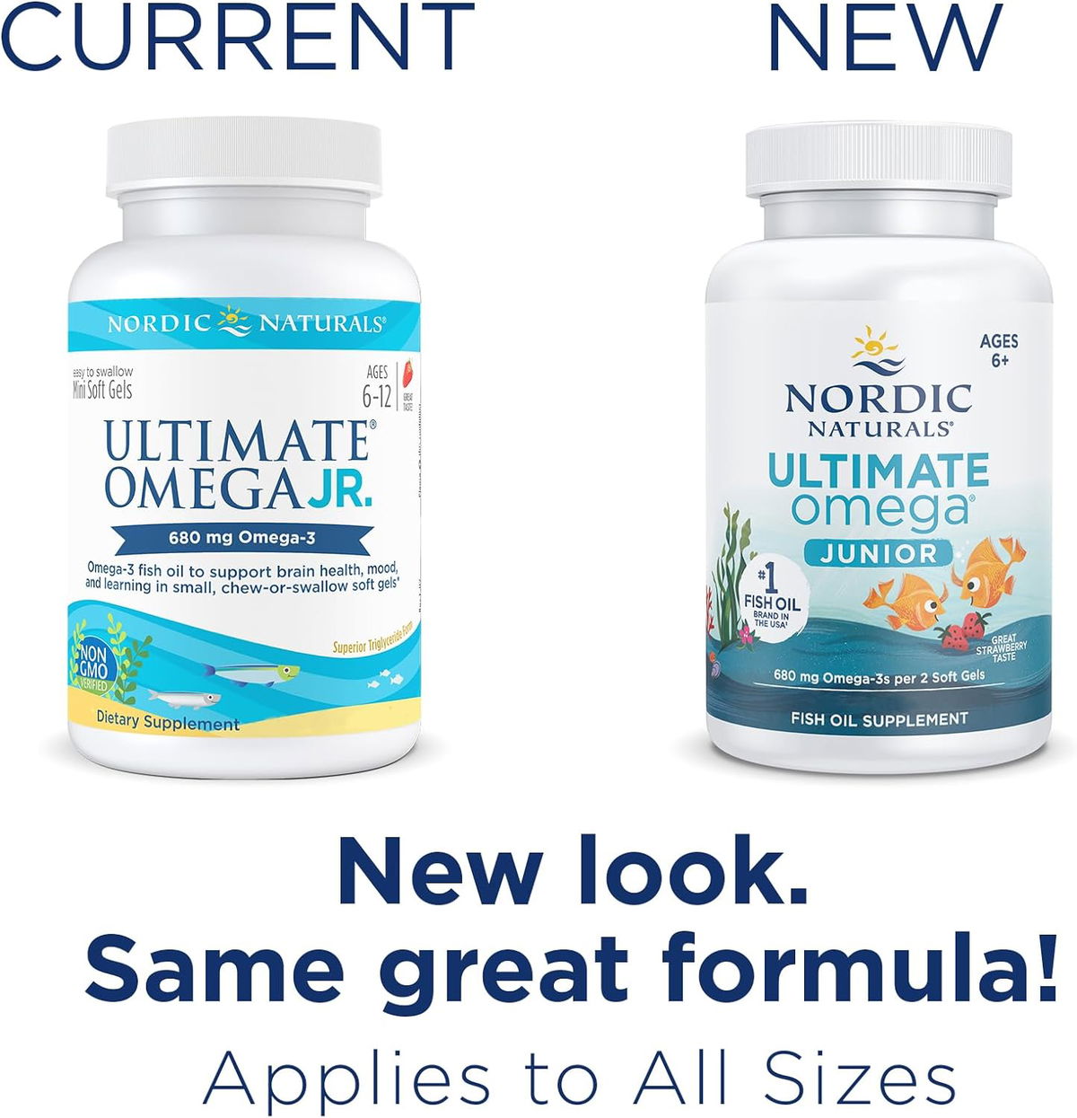 Nordic Naturals Ultimate Omega Junior - Ayuda a tener un corazón y cerebro saludables y mejora el estado de ánimo de niños en desarrollo, sabor fresa