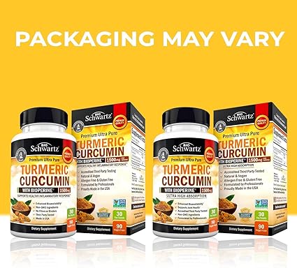 Píldoras de cúrcuma de alta potencia mejoradas con bioperina: la fórmula de cúrcuma BioSchwartz tiene 1500 mg de curcumina de cúrcuma con 95% de curcuminoides estandarizados por porción (alta potencia) y 10 mg de bioperina (pimienta negra, curcumina con pimienta negra) ayudando a una mayor absorción y biodisponibilidad