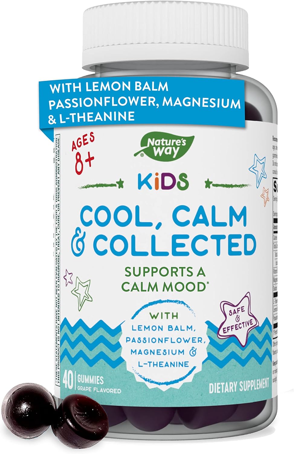 Nature's Way Gomitas frescas, calmadas y recogidas para niños de 8 años en adelante, sabor a uva, gomitas