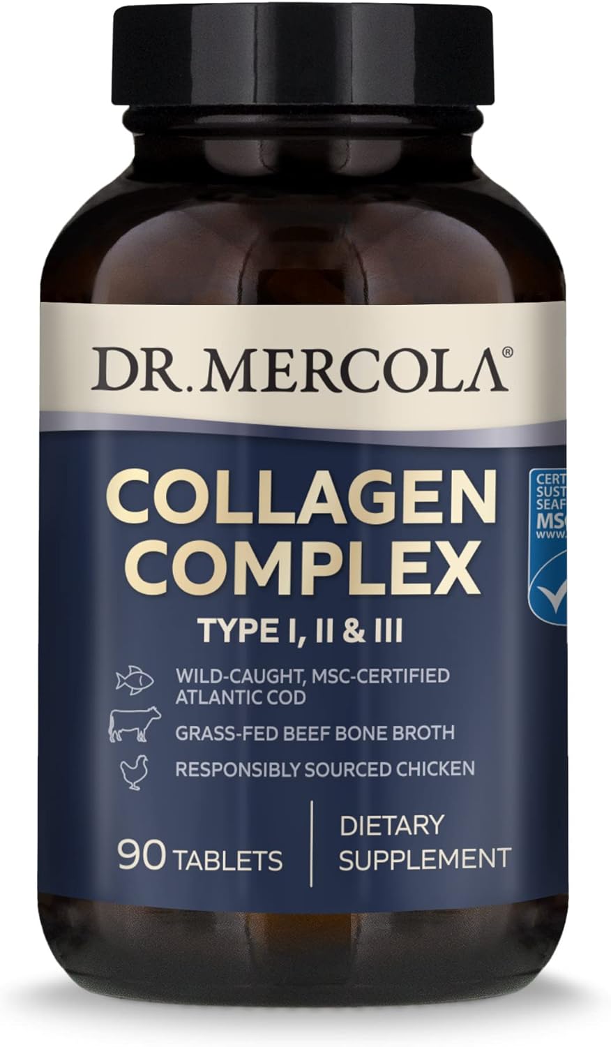 Dr. Mercola Suplemento dietético de complejo de colágeno, tipo I, II y II, tabletas, sin OMG, sin gluten, sin soja