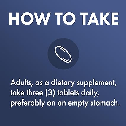 Los adultos, como suplemento dietético, toman tres (3) tabletas al día, preferiblemente con el estómago vacío.*